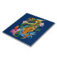 Ein grüner chinesischer Drache mit einem orangefarbenen Koi-Fisch mit Lotus-Blume und Kirschblüten vor dunkelblauer Kulisse.
