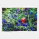 Grüner Weihnachtsbaum, blaue dekorative Lichter und roter Zierkugel mit frischem Schnee. Fröhliche und fröhliche Stimmung. Frohe Weihnachten und glückliches Neues Jahr. Drucke und Geschenke für jeden zum Spaß und gute Laune. Horizontale oder landschaftlich orientierte Produkte und Souvenirs.