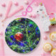 Grüner Weihnachtsbaum, blaue dekorative Lichter und roter Zierkugel mit frischem Schnee. Fröhliche und fröhliche Stimmung. Frohe Weihnachten und glückliches Neues Jahr. Drucke und Geschenke für jeden zum Spaß und gute Laune. Produkte und Souvenirs im quadratischen Format.