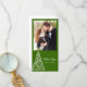 Vielen Dank für die Geschenke, die nach einer festlichen Dezember-Verlobung, Brautparty oder Hochzeit mit der eleganten Grünen Weihnachtsbaum Dankeschön Foto-Karte erhalten wurden. Ändern Sie die Hintergrundfarbe und den Schriftart, falls gewünscht. Dieses edle, kundenspezifische wintery Dankeschön Fotokarte bietet ein Wirbles, weiße Weihnachtsbaum-Design auf einem grünen Hintergrund.
