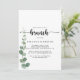 Cette invitation pour un brunch à l'eucalyptus vert est parfaite pour un événement rustique. L'aménagement comprend des branches et des feuilles d'eucalyptus botaniques élégants dessinés à la main dans des aquarelles.