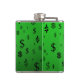 Dieser Kolben weist eine Reihe von Dollarzeichen ($) in verschiedenen Stilrichtungen auf, die über einen grünen Hintergrund verstreut sind.