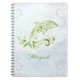 Create a unique and one of a kind journal with a Green Dolphin Personalized Spiral Photo Notebook. Notebook design features a vibrant metallic dolphin against a muted seascape adorned elegant scrolls with an area to personalize with your name. Additional gift items available with this design as well as a variety of colors.