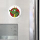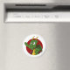 Magnet mit Abbildung eines niedlichen, kleinen, grünen, fliegenden Drachen, in rotem Kreis, niedliche Fantasie / Märchendesign für Kinder von Maxi Harmony