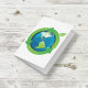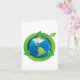 Ein grüner Erdkugel mit grünen Pfeilen um ihn herum. Dieses Design sieht auf dieser Grußkarte wirklich effektiv aus