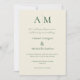 De beaux monogrammes mariés et mariés au sommet de cette belle faire-part de mariage. Écru arrière - plan avec faux vert en détresse. Nous avons utilisé la coordination de la police verte à l’avant pour coordonner avec le dos vert en détresse de cette élégante invitation. Absolument époustouflant de prendre.