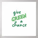 "GREEN eine Chance geben" Plakate werden für die umweltbewusste Person geschaffen, die die Botschaft als Erinnerung an andere Menschen der düsteren Situation unseres Planeten weitergeben möchte. Die Bilder der Blätter bilden das Wort GREEN. Sie können auch den Papiertyp und die Größe Ihres Posters auswählen.