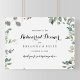 Dieses grüne Eukalyptus-Probe-Dinner-Begrüßungsschild ist perfekt für eine moderne Hochzeitsfeier Probe. Das Design zeichnet sich durch botanische Aquarellfarben, handgezeichnet eleganten Eukalyptus, inspirierend natürliche Schönheit.