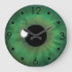 Green Eye Iris © Sunny Mars Designs. Coole, lustige, individuell bedruckte grüne Augapfel große Runde Uhr mit einer trendigen, modernen, schönen, einzigartigen, freaky, gruseligen, bizarren und verdrehten grafischen Abbildung einer auffallenden großen grünen realistischen Augenliris eines Auges. Klicken Sie auf das Bild unten, um alle Farb- und Augenwischuhren zu sehen: