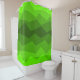 Dieser Duschvorhang ist geometrisch in fünf Grüntönen gestaltet, die horizontal verlaufen.
