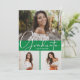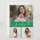 Fügen Sie Ihre Lieblings-3 Fotos auf der Vorderseite dieser Graduierungsankündigungen, die Klasse von und GRADUATE in schicken Schriften auf einem grünen Hintergrund mit Ihren Details auf der Rückseite. MEHR FARBEN und Designs in unserem Geschäft.