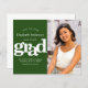 Achten Sie darauf, dass alle Ihre Freunde und Verwandten den Meilenstein Ihres Absolventen-Abschlusses feiern können! Senden Sie dieses atemberaubende, einfache, moderne, personalisierte Foto "Save the Date" Budget Ankündigung für eine Veranstaltung zu erinnern. Fett, grafisch, weiß Typografie überlagert einen Jäger grünen Hintergrund. Fügen Sie auf der rechten Seite ein Foto Ihrer Wahl hinzu. Personalisieren Sie den benutzerdefinierten Text mit dem Namen, dem Unterrichtsjahr und dem Datum Ihres Absolventen. Ihre individuelle Nachricht und ein Jäger-Green Graduation Cap Icon schmücken die Rückseite. In dieser trendigen und stilvollen Kollektion sind auch Matching-Einladungen, Dankeschön-Karten, Cap Toppers, Servietten, Teller und andere Abschluss-Goodies erhältlich. Garantiert, um ihren besonderen Anlässen stilvollen Spaß zu bieten! Geben Sie einfach den Namen, die Schule und die Klasse, das Datum, die benutzerdefinierte Nachricht ein, fügen Sie ihr Foto hinzu, und Sie können diesen Abschluss leicht personalisieren "Save the Date" Budget Ankündigung Karte. Bitte schicken Sie mir eine Nachricht mit Fragen oder Wünschen.