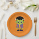 Papier Teller mit einem lustigen Halloween-Bild mit einem grünen Frankensteinmonster.
