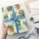 Saukkulente aus der Hauspflanze auf grünem Gingham-Hintergrund, Aloe vera, Prickly Pear Kaktus, Golden Barrel Kaktus und Aeonium.