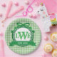 Green Gingham Griechischer Key Bow Vollmongramm Pappteller