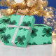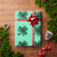 Schönes St. Patrick's Day Geschenk: Klee mit smaragden grünen Glitzern Glitzer Muster auf türkisfarbenen Verpackungspapier. Foto von Glitzern nicht wirklich Glitzer!
