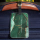 Moderne, elegante Gepäckausweis-ID mit grünem Age-Geode, Marmorstein und goldenem Glitzer funkeln Akzente personalisiert mit schicken femininen handgeschriebenen Skript Monogramm Initialen und Namen. Stilvolles Luxusdesign. Kontaktieren Sie den Designer über den Zazzle Chat oder makeitaboutyoustore@gmail.com , wenn Sie dieses Design modifizieren möchten, ein anderes Produkt erwerben möchten oder gerne Artikel koordinieren möchten.