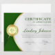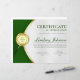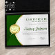 Der berufliche Award für das Zertifikat zeichnet sich durch grüne und goldene Farbtöne, Medaille und grüne Sterne aus. Passen Sie auf Ihre Wünsche an.
