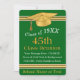 Green Gold et White personnalisables, 45e Classe Invitations de Réunion. Tapez votre classe d'année, votre nom d'école, vos informations sur l'avant et l'arrière-plan ou votre texte ou supprimez tout texte ou partie de conception. Vous, ou CALL Designer Linda : 239-949-9090 HNE 10h à 19h, pouvez CHANGER le texte vert Arrière - plan et or ou blanc et ou TRANSFÉRER ce design à votre choix de milliers d'autres idées de fête de réunion de 45e classe, 45e classe Fournitures, faveurs et cadeaux. * AVANT LA COMMANDE *, Pour les changements à la conception, les couleurs, l'occasion et le produit. Call Designer Linda : 239-949-9090 HNE 10h à 19h Une fois votre commande passée, je ne peux pas vous aider. Vous pouvez appeler la société. SUPPRIMER TOUS LES TEXTES ou IMAGES temporaires. Ce que vous voyez est ce que vous allez obtenir! 100% AIME LA GARANTIE. A+ BBB.org / Meilleure évaluation du bureau des affaires. Vous, pouvez TRANSFÉRER le design à des MILLIERS d'autres cadeaux personnalisés, des fournitures de fête sur mesure, décoration de maison, décorations de fête, coques d'appareils, bijoux, etc, pour TOUTE OCCASION. Imprimé sur mesure avec différentes nuances de couleurs pour lui donner des designs uniques pour votre occasion unique, des couleurs d'équipe, etc. Je peux concevoir différentes nuances de couleurs des tons or, argent, look biseauté, faux design vintage, look Parties scintillant Faux, etc. Le service d’impression à la demande de Zazzle est incroyable. Couleurs vives, détaillées et vives. Il s'agit de cadeaux imprimés et non gravés. APPELEZ ou TEXTE Zazzle Designer Little Linda Pinda : 239-949-9090 pour AIDE, Couleur, Design, Occasion et Changements de produit.Milliers de produits divers. Le designer Linda offre un service de conception personnalisée gratuit. Les cadeaux personnalisés sont expédiés partout dans le monde. Amérique du Nord, (États-Unis, Canada) Royaume-Uni, Australie, Europe, Asie, Amérique du Sud, etc... Toute partie de mes designs peut être placée sur votre choix de milliers de produits personnalisables. Veuillez ENREGISTRER les LIENS de magasin et le numéro de téléphone de Little Linda Pinda Designs ci-dessous. Little Linda Pinda Designs vous offre un service de conception personnalisée GRATUIT. Zazzle.com/Store/LittleLindaPinda Calling and Texting est le MEILLEUR et le PLUS RAPIDE moyen d'obtenir la connaissance de Linda. APPEL ou TEXTE Little Linda Pinda au : 239-949-9090 * HNE 10 h à 19 h EST * Voir plus Idées de réunion de classe 45, fournitures de réunion de classe 45e, décoration et PLUS ICI : https://www.zazzle.com/littlelindapinda/gifts?cg=196383779087774197&rf=238147997806552929