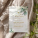 Personalisieren Sie das Design mit den Details zum Party der Taufe Ihres Kindes. Reverse Seite hat mit Aquarell Grün und Gold Blätter Eukalyptus oder nutzen Sie den Platz, um zusätzliche Text und Fotos hinzuzufügen. Klicken Sie auf Anpassen, um eine beliebige Hintergrundfarbe auszuwählen und die Schriftart und Farben zu bearbeiten, um eine einzigartige Baptismus-Einladung für Ihr Baby zu erstellen.