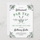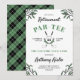 Eine Golf-Party Einladung zum Thema Pensionierung in Weiß und Grün mit Grün und einem Golfball und gekreuzten Golfklubs.