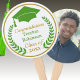 Personalisierte Foto-Handfans für das Abschluss-Publikumsereignis, von dem Sie wissen, dass es heiß sein wird. Klassisches Bild eines grünen Grades und eines Lorbeerkranzes mit goldfarbenem Rahmen und eigenem Text. Dein Foto ist auf der anderen Seite. Siehe auch entsprechende Einladungen, Schilder, Party-Vorräte und andere Farbgruppen in diesem Design. Foto-Guthaben: Michelle Raponi von Pixabay