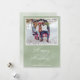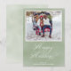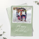 Dieses Design besticht durch einen Happy Holidays-Gruß mit Platz für ein Foto, der einen eleganten grünen Aquarell zeigt. Dieses einfache, minimalistische Layout mit Schriftzeichen und anmutiger Kalligraphie schafft eine zeitlose und moderne Urlaubsfotokarte, die sich perfekt für den Austausch von warmen saisonalen Wünschen eignet.