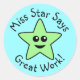 Ein grüner Happy Cartoon Stern. Der Text lautet "Miss Star Says Great Work!" und kann für einen individuelle Name/eine Nachricht geändert werden. Ideal für Lehrer als Belohnung für Schüler.