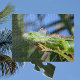 Eine grüne Leguana, eingebettet in die Sonne, inmitten tropischer Palmenfronten wie ein moderner Drache. Das ist Florida Wildlife in der Nähe und im Profil. Dieses große Reptil mit einer spitzen Mähne findet man in den Tropen oder am Tisch, sobald diese lustige Herausforderung eines Puzzles gelöst ist. Das ist die Originalfotografie von JLW_FOTOGRAFIE