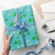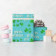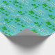 Green Kleeblatt Clovers Happy St. Patrick's Day Wrapping Paper. Ein Happy St. Patrick`s Day Text mit grünen irischen Kleeblättern für Glück. Clovers haben vier Blätter. Der Hintergrund ist lebhaft blau. Sie können den Text ändern.