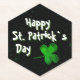 Green Kleeblatt Irish Happy St. Patrick`s Day Untersetzer. Ein Happy St. Patrick`s Day Text mit grünen irischen Kleeblättern für Glück. Der Hintergrund ist schwarz. Sie können den Text ändern.