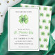 Die Party Einladung Green Kleeblatt Luck Simple St. Patrick's Day zeichnet sich durch ein grün-weißes Farbschema aus, das mit einem grünen vierblättrigen Kleeblatt-Set auf weißem Hintergrund gestaltet wurde. Die farbenfrohe "St. Patrick’s Day"-Schrift bringt festlichen Beifall. Die Rückseite ist mit einem zauberhaften vierblättrigen Kleeblatt-Muster gefüllt, um Details hinzuzufügen. Ideal, um jeden St. Patrick’s Day einladen zu können, diese Einladung ist vollständig anpassbar, um Ihre Grüße besonders zu machen! Wenn Sie eine benutzerdefinierte Bestellung wünschen, klicken Sie einfach auf die Schaltfläche 'Nachricht' unten.