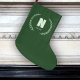 This elegant green Christmas stocking features a classic letter N monogram framed by a laurel wreath and personalized with any name. A timeless holiday keepsake, perfect for mantel décor, gift giving, or creating a coordinated family stocking set. Customize the name and make Christmas morning feel extra special.