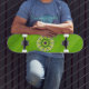 Original artwork featuring a close-up leaf pattern in lime green color tones and styled to reflect a modern impact. The silhouette is a mandala art circle, placed in the middle of the deck. These cool boards are made of the best maple wood and quality printing.