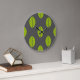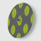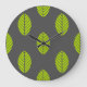 Green leaves on dark grey background clock design.