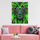 Green Lion Head Wrapped Canvas - Lion Wrapped Canvas Print - Lion Face Portrait by Tigazprint