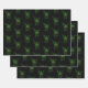 Ein grünes Männchen Gesicht mit keltischen Lore Set in einem Hintergrund von schwarz. Grüne Blätter.