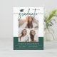 Grüne moderne Foto Abschluss Ankündigung. Feiern Sie den großen Augenblick Ihres Absolventen mit einer modernen, stilvollen Ankündigung, die Einfachheit mit herzlichen Details verbindet. Dieses grüne und weiße Design zeichnet sich durch ein sauberes, minimalistisches Layout mit einer Collage von drei Fotos an der Vorderseite aus. Es eignet sich hervorragend, um die Persönlichkeit Ihres Absolventen zu erfassen. Das Wort "Absolvent" wird in einem modernen, handgeschriebenen Drehbuch schön hervorgehoben, hervorgehoben durch eine niedliche illustrierte Graduierungskappe für eine lustige und dennoch elegante Touch. Die klassischen grünen Töne in Verbindung mit knalligem Weiß bieten einen frischen, zeitlosen Look, der sich durch die Eleganz auszeichnet. Erstellen Sie einen unvergesslichen Sake, der die Geschichte Ihres Absolventen erzählt - beginnen Sie, Ihre Ankündigung noch heute anzupassen.