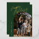 Green Modern Script Happy Holidays Arch 2 Photo Foil Holiday Card propose un script amusant et moderne sur une photo voûtée, ainsi qu'une deuxième photo à l'arrière et la chambre pour votre message.