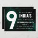 Green Neon 9e anniversaire Invitation