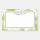 Sticky Noten mit einem sich wiederholenden Muster von großen Palmen Blätter auf einem olivgrünen Hintergrund. Moderne und tropische Atmosphäre. Oben platziert ist ein weißes Rechteck mit einem schwarzen Rand. Personalisieren Sie mit Ihrem eigenen Text.