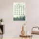 Ce beau tableau de 25 places mariage comprend des assignations de table pour 250 personnes à la traditionnelle 10 places par table. Le design est rustique et élégant, avec une pinède verte recouverte de brume ou de brouillard. Le titre dit : S'il vous plaît trouver votre table, et est écrit en calligraphie de script sophistiquée. Il y a de l'espace pour les noms du couple et la date du mariage ci-dessous. Idéal pour un mariage en plein air ou en montagne.