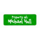 Green Plaid "Propriété de :" Étiquette