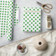 Ein Umhüllungspapier, das mit einem grünen Polka-Punktmuster mit einem mittleren Abstand zwischen den Punkten auf einem weißen Hintergrund gebaut wurde. Passen Sie den weißen Hintergrund unter anderen Optionen an.