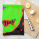 Beängstigender Spaß Green Pumpkin Zombie mit roten gelben Augen, lila Nase, roter schwarzer Mund, brauner Stiel und Blick von roten Bluttropfen auf schwarzem Hintergrund. Halloween-Küchenhandtücher sorgen für ein angenehmes Ambiente. Original Graphic Artwork handbemalt Design und Text Sprichwort von unserem Sohn © TamiraZDesign. Alle Rechte vorbehalten. Besuchen Sie meinen Shop für weitere einzigartige Artikel unter: www.zazzle.com/tamirazdesigns