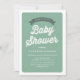 Individuelle Retro-grüne Babydusche Einladung. Diese grüne Babydusche lädt mit Vintager Typografie und einfacher Typografie ein. Personalisieren Sie diese, indem Sie Ihre Veranstaltungsdetails hinzufügen. Diese Vintage Babydusche ist in anderen Farben erhältlich.