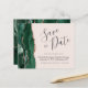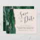 Diese elegante Budget Save the Date Karte verfügt über eine smaragdgrüne Aquarellfarbe agate Grenze mit Imitaten Rose Gold Glitzer bestickt. Der anpassbare Text kombiniert handgeschriebene handgeschriebene Schrift aus Holzkohle, Kupferplatte und kursiv Schriftart auf einem rot-rosa Hintergrund. Auf der Rückseite ist ein smaragdgrünes und goldenes Rose-Design zu sehen.