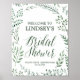 Dieses grüne, rustikale Kranz Brautparty Begrüßungspakel ist perfekt für ein Brautparty im Freien. Das Design zeichnet sich durch einen wunderschönen und skurrilen Rahmen aus Aquarellfarben-Blätter, Pflanze und Grünpflanzen aus. Passen Sie das Poster mit dem Namen der Braut, die zu sein hat, und dem Datum und der Position des Brautparty an.