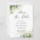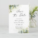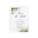 Green Save The Date Card. Cette invitation à la douche nuptiale élégante et élégante présente de magnifiques aquarelles peintes à la main. Trouvez les articles correspondants dans la Collection Florale Eucalyptus de verdure.