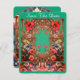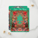 Grüne Save the Date Hochzeitskarte mit Blumenmuster. Die Vorderseite zeigt ein Blumendesign im Mucha-Stil . Zurück befindet sich ein Blumendesign im Mucha-Stil mit den Personalisierten Details der geplanten Hochzeit.